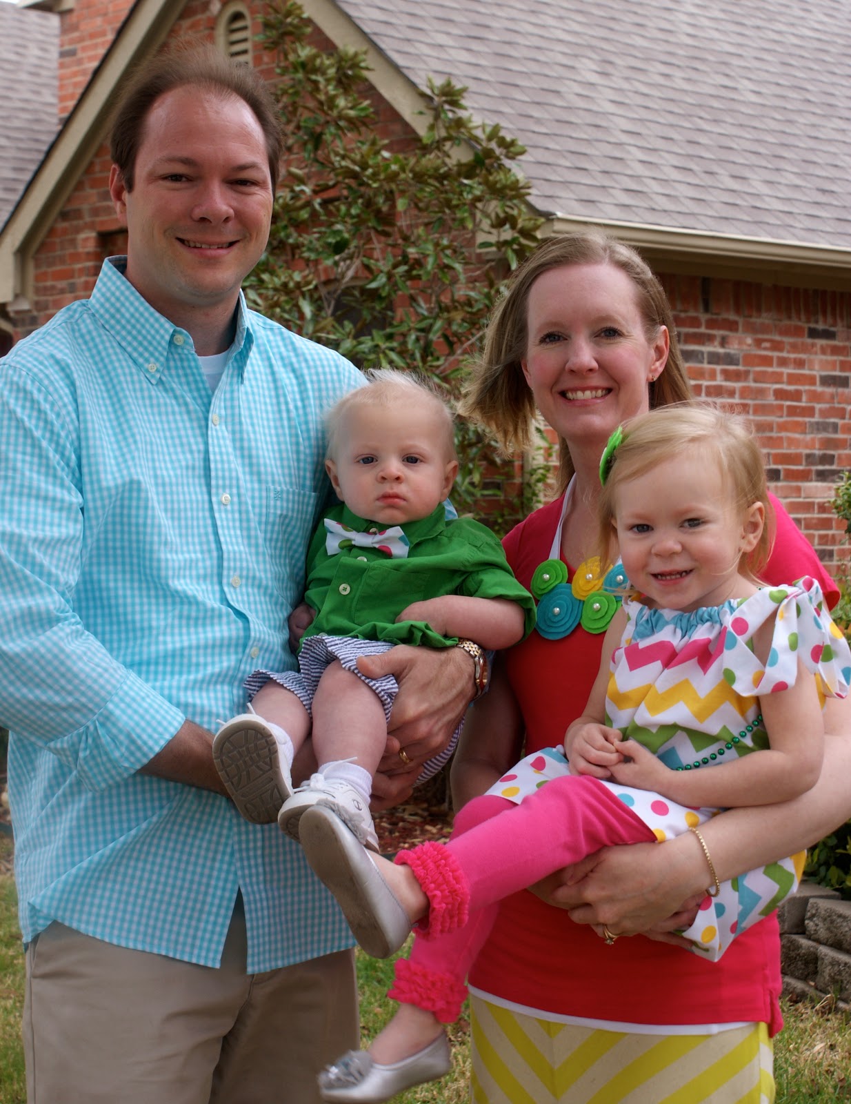 Some friends came over to trade off picture taking. I hate family pictures with one family member behind the camera. They turned out okay. I always hate how I have to squint outside. Makes me look old.